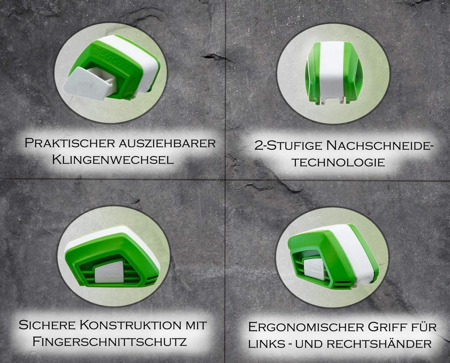 - ENVIRONMENT & RESOURCE-FRIENDLY: The 2-step cut saves you the cost of two wiper blades and thus actively supports the environment and saving resources. For the sake of the environment with the wiper blade sharpener!